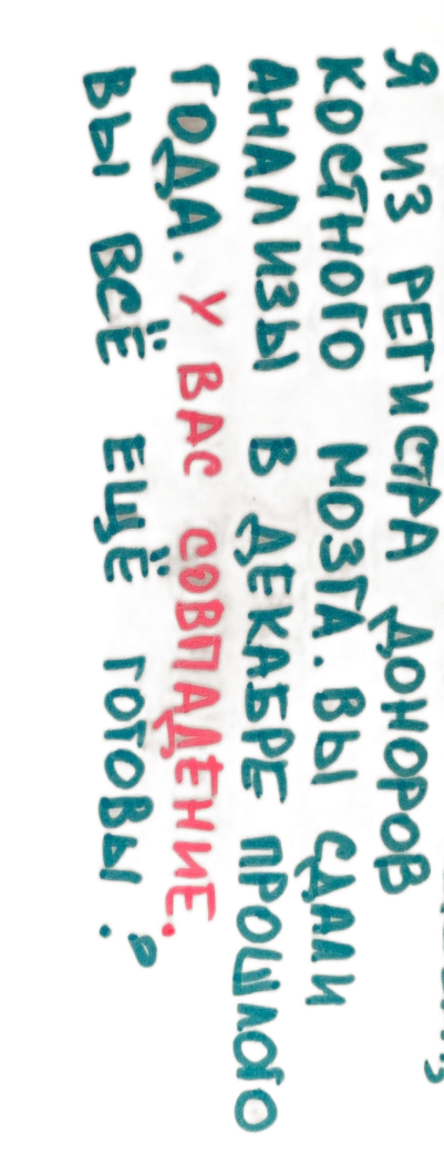со внутренней стороны щеки , как это сделала я. После врачи получают доступ к полной карте комплекса тканевой совместимости донора. Её сравнивают с картами реципиентов и ищут совпадение.